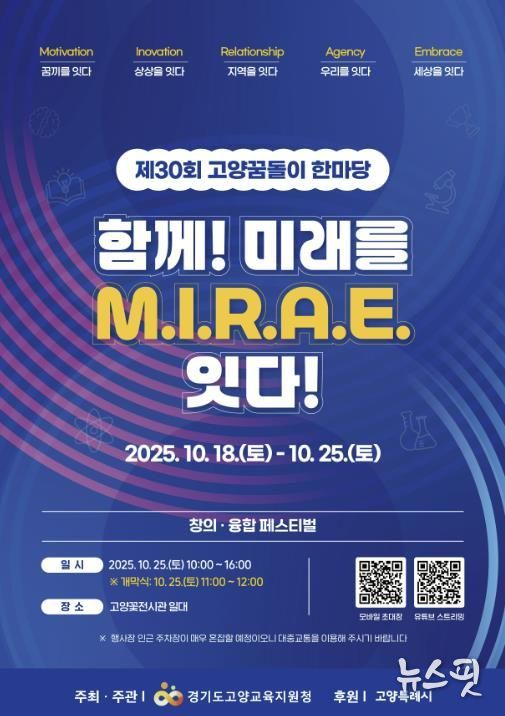 이현숙 교육장은 “고양꿈돌이 한마당은 지난 30년간 학생, 학부모, 교사, 지역사회가 함께 만들어온 고양 대표 교육 축제”라며 “앞으로도 학생들의 꿈꾸고 도전하는 리더로서 자기주도성과 혁신적 상상력, 나아가 세상을 향한 포용성을 키워가는 장이 되길 바란다”고 말했다.