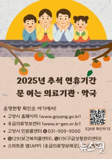 (뉴스핏 = 김수진 기자) 고양특례시는 다가오는 추석 연휴(10월 3일~9일, 7일간) 동안 발생할 수 있는 진료 공백을 최소화하기 위해 관내 의료기관 및 약국과 협력하여 응급진료체계를 운영한다고 밝혔다.