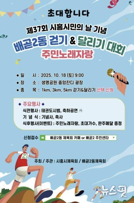 신제승 배곧2동장은 “걷기·달리기 대회와 주민 노래자랑이 주민 건강과 화합을 위한 축제의 장이 되길 기대한다”라며 “많은 관심과 참여를 부탁드린다”라고 밝혔다.