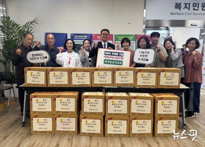 (뉴스핏 = 김호 기자) 남양주시는 26일 퇴계원읍 소재 퇴계원감리교회가 민족 최대의 명절인 추석을 맞아 퇴계원 지역사회보장협의체에 라면 40박스를 기탁했다고 29일 밝혔다.