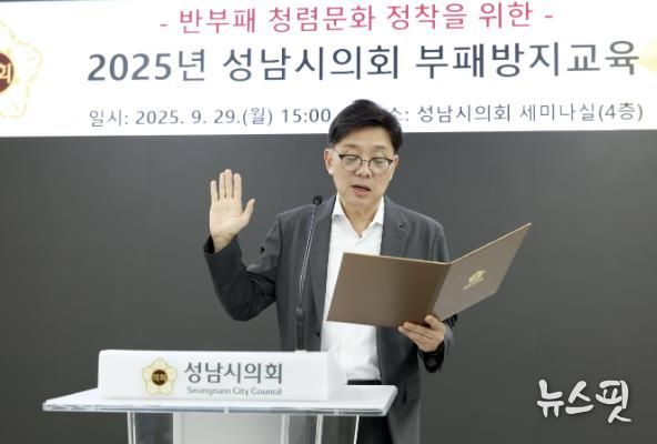 (뉴스핏 = 김수진 기자) 성남시의회는 29일 의회 4층 세미나실에서 전 의원을 대상으로 부패방지교육을 실시했다. 이번 교육은 지방의원에게도 적용되는 '공직자의 이해충돌방지법'의 취지를 되새기고, 사적 이해관계와 겸직 등과 관련한 사회적 요구에 적극 부응하기 위해 마련됐다.