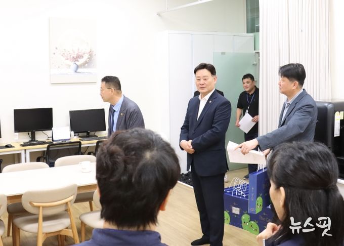 (뉴스핏 = 김수진 기자) 경기도의회 더불어민주당 최종현 대표의원(수원7)이 30일 추석을 앞두고 백현종 국민의힘 대표의원과 함께 의회내 현업부서 직원들을 격려했다.