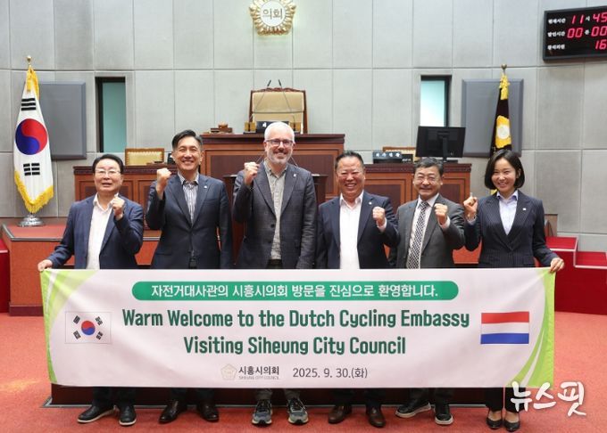 (뉴스핏 = 김수진 기자) 시흥시의회 도시환경위원회가 30일 의회청사 소담뜰에서 네덜란드 자전거대사관(Dutch Cycling Embassy, DCE)을 초청해 간담회를 열고, 시흥시 자전거 정책 발전 방향과 친환경 교통 시스템 구축 방안에 대해 논의했다.