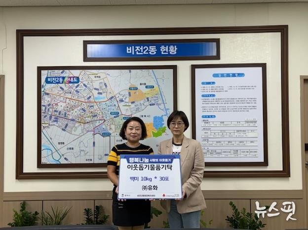 (뉴스핏 = 김수진 기자) ㈜유화는 추석 명절을 맞아 지난 29일 비전2동 행정복지센터를 방문하여 100만원 상당의 백미 30포를 전달하며 온정을 베풀었다.