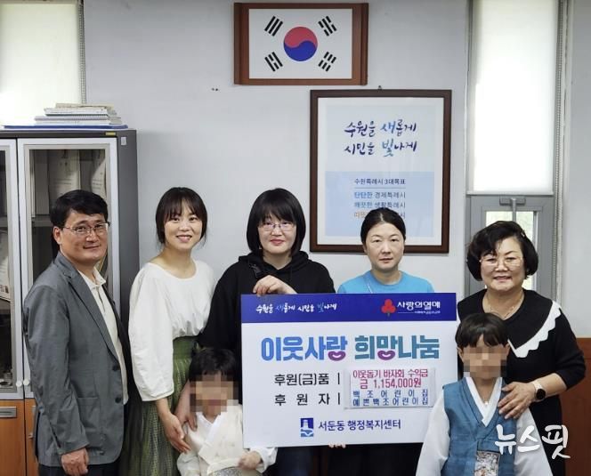 (뉴스핏 = 김호 기자) 수원시 권선구 서둔동에 위치한 백조어린이집 및 예쁜백조어린이집은 2일 지역사회 내 어려운 이웃과 소외계층을 위해 어린이집 체험활동 수익금 1,154,000원을 서둔동행정복지센터에 기부했다.