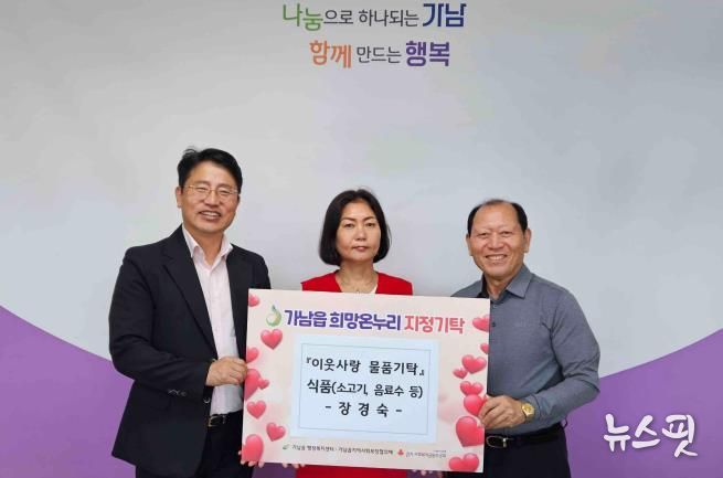 (뉴스핏 = 김호 기자) 지난 9월 30일 장경숙(가남읍 주민)씨가 가남읍 내 어려운 이웃들을 위해 소고기와 음료수 등 식품을 가남읍 행정복지센터에 기탁했다.