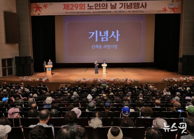 (뉴스핏 = 김수진 기자) 과천시는 2일 시민회관 대극장에서 ‘제29회 노인의 날 기념식’을 열었다. 시가 주최하고 과천시노인복지관이 주관한 가운데 열린 이날 행사에는 지역 어르신 1천1백여 명이 참석했다.