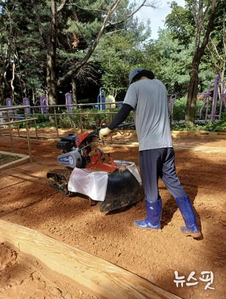다른 1곳인 구미동 공공공지 내 750m 길이의 황톳길은 로터리 기기를 내년도에 추가 구매한 뒤 흙 뒤집기 작업을 한다.