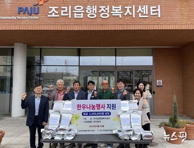 (뉴스핏 = 김호 기자) 파주시 조리읍은 지난 9월 30일 전국한우협회 파주시지부로부터 추석 명절을 맞아 220만 원 상당의 한우 양지 43kg을 기탁 받았다고 전했다.