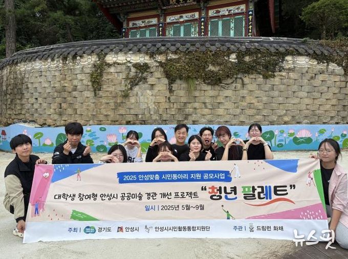 (뉴스핏 = 김수진 기자) 안성시자원봉사센터 소속 대학생 봉사단 ‘드림런 화채(花彩)’가 지난 9월 27일과 10월 4일 이틀간 안성시 보개면 영평사에서 제2차 벽화 봉사활동을 진행했다.