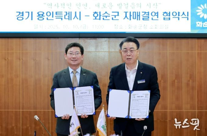(뉴스핏 = 김수진 기자) 용인특례시는 10일 전라남도 화순군과 자매결연을 체결하고 두 도시의 교류와 발전을 위해 적극 협력키로 했다.