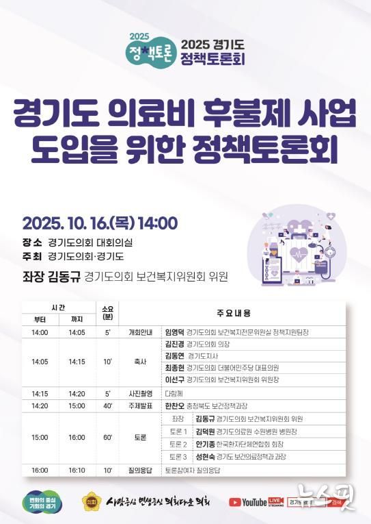 이번 토론회는 경기도의회와 경기도가 공동으로 주최하며, 의료비 부담 완화 및 의료접근성 강화를 위한 정책 대안을 모색하기 위해 마련됐다.