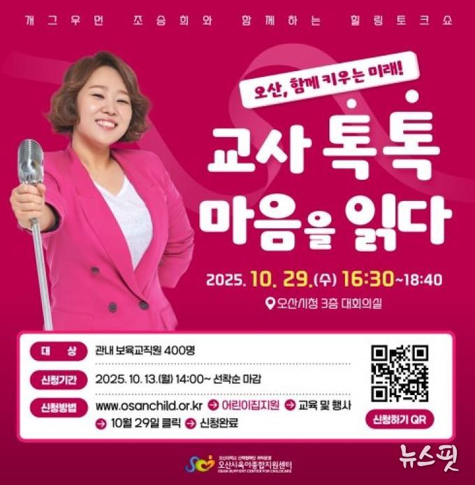 이번 행사는 보육과 육아에 관심 있는 부모 및 보육교직원 누구나 참여할 수 있으며, 선착순 850명까지 무료 입장이 가능하다. 참여 신청은 10월 13일부터 오산시육아종합지원센터 홈페이지를 통해 접수할 수 있다.