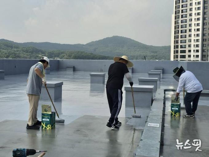 파주교육지원청은 최근 집중호우에 따른 옥상 누수로 교실과 복도에 빗물이 누수된 심학중학교에 현장지원팀을 지원하여 2회에 걸쳐 직접 옥상방수 보수공사를 실시하는 등 현장지원에 노력하고 있다.
