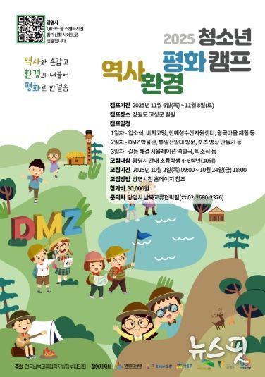 (뉴스핏 = 김수진 기자) 광명시는 전국남북교류협력지방정부협의회가 주최·주관하는 ‘2025 청소년 역사·평화·환경캠프’에 참가할 청소년을 모집한다.