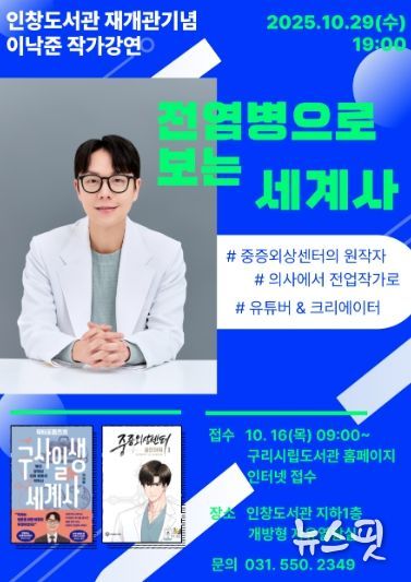 특히 작가초청 강연에는 『중증외상센터 : 골든아워』의 원작자인 이낙준 작가가 참여한다. 행사는 10월 29일(화) 저녁 7시, 새롭게 단장한 지하 1층 북카페형 개방 공간에서 진행된다.