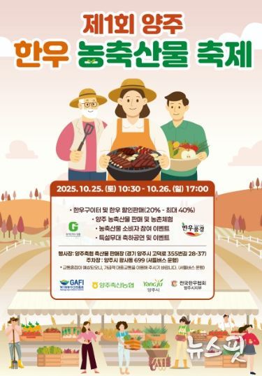 (뉴스핏 = 김수진 기자) 양주시가 양주축산농협과 공동으로 주최하고, 경기도농수산진흥원 공모사업 지원으로 추진되는 '제1회 양주 한우 농축산물 축제'를 오는 10월 25일부터 26일까지 이틀간 개최한다.