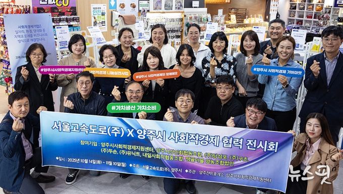 (뉴스핏 = 김수진 기자) 양주시와 서울고속도로㈜가 지난 14일 오후 3시, 양주휴게소 2층 전시공간에서 ‘서울고속도로(주)×양주시 사회적경제 협력 전시회’ 개막 기념식을 개최했다.
