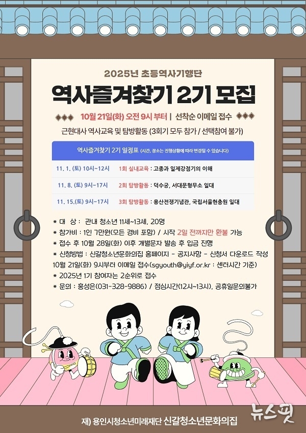 용인시청소년미래재단 신갈청소년문화의집, 초등역사기행단 ‘역사즐겨찾기’ 2기 모집