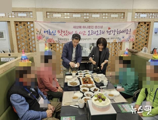 이날 생신상은 이교수한정식(팔달구 인계동 소재)과 매교동 행정복지센터 및 지역사회보장협의체 간 업무협약의 일환으로 이교수한정식의 따뜻한 후원으로 마련됐다. 여기에 매교동 주민자치회가 정성껏 준비한 생일 케이크가 더해져 더욱 뜻깊은 자리가 됐다.