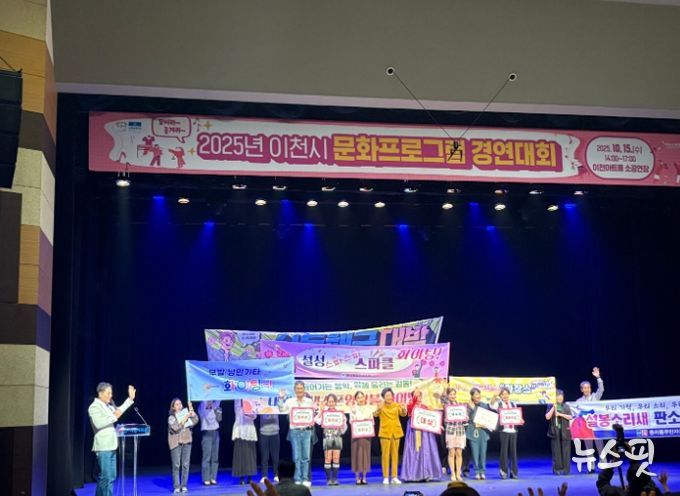 (뉴스핏 = 김수진 기자) 이천시는 2025년 10월 15일 이천아트홀 소공연장에서 14개 읍면동 약 450명의 시민과 함께 각 지역의 특색있는 문화와 예술적 역량을 발휘하는 ‘이천시 문화프로그램 경연대회’를 성황리에 마쳤다고 밝혔다.