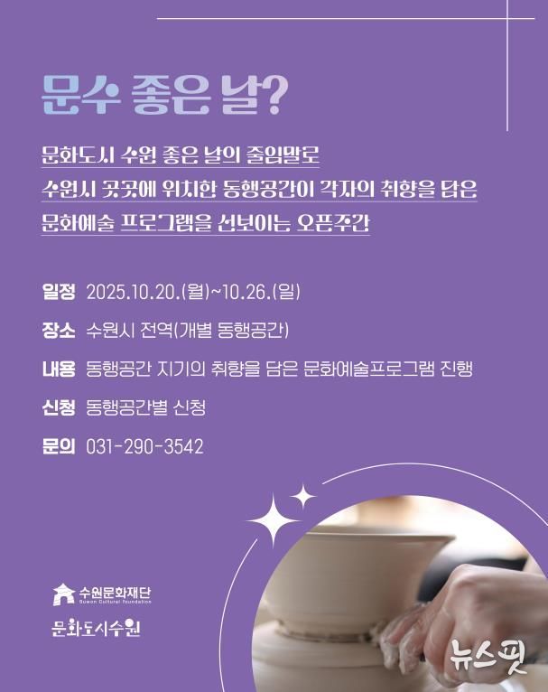 (뉴스핏 = 김수진 기자) 수원문화재단이 오는 20일부터 26일까지 ‘동행공간’ 특별 주간인 ‘문수 좋은 날’을 운영한다.