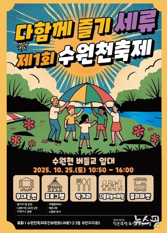 (뉴스핏 = 김수진 기자) 수원시 권선구 ‘수원천축제추진위원회’가 주최하는 '제1회 수원천 축제 다함께즐기세류'를 오는 25일 권선구 버들교 일대에서 개최한다고 밝혔다.