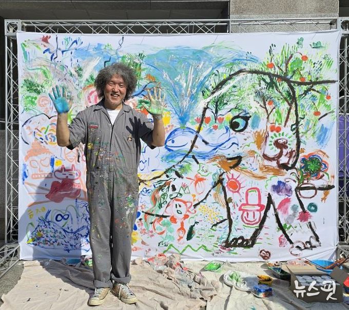 낮 12시 아람누리 해받이터에서는 그림책 작가 김중석이 ‘함께 그리니까, 좋다’를 주제로 2시간 동안 그림 그리기 공연을 진행했다. 참가자들은 실시간으로 눈앞에서 그림책이 만들어지는 과정을 체험하며 어른·아이 할 것 없이 따뜻한 이야기에 함께 공감했다.