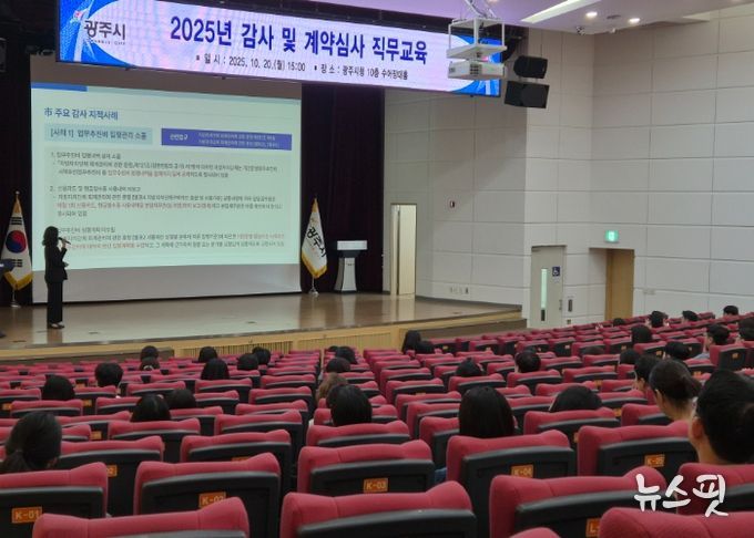 (뉴스핏 = 김호 기자) 광주시는 20일 시청 수어장대홀에서 전 직원을 대상으로 ‘2025년 감사 및 계약심사 직무교육’을 실시했다.