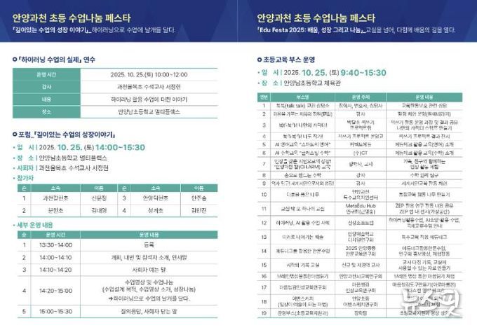 이승희 교육장은 “이번 에듀-페스타(Edu-Festa)를 통해 수업과 삶이 이어지는 수업 나눔으로 협력적 수업문화가 확산되고, 다양한 교육활동의 운영 성과 공유하여 교육주체가 함께 배우는 성장의 기회가 되길 바란다. 앞으로 학생의 꿈대로 결대로 미래를 여는 안양과천교육은 다채로운 교육활동 운영과 지원으로 모두가 성장하는 학교문화를 만들어 가겠다”고 밝혔다.