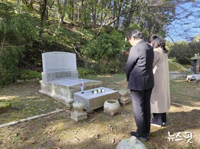 (뉴스핏 = 김수진 기자) 경기북부보훈지청은 국가보훈부 사업인 ‘광복 80, 독립유공자 묘소 참배 캠페인’의 일환으로 관내 지역인 남양주시 모란공원에 위치한 故김봉일 지사, 故박영선 지사의 묘소를 10월 22일에 찾아 소형 태극기와 국화를 헌화하며 참배했다. 광복 80주년을 맞이하여 진행되는 이번 캠페인은 독립유공자들에 대한 존경과 감사의 마음을 담아 연중 행사로 시행되고 있다.