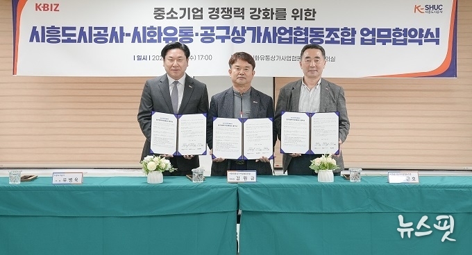 (뉴스핏 = 김수진 기자) 시흥도시공사는 지난 22일 종합산업용품 제조 및 판매사업 협력 공동체인 ‘시화유통상가사업협동조합 및 시화공구상가사업협동조합(이하 협동조합)’과 관내 중소기업 경쟁력 강화를 목표로 하는 업무협약을 체결했다고 밝혔다.