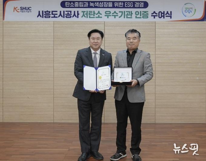 (뉴스핏 = 김수진 기자) 시흥도시공사는 도시재생안전협회로부터 ‘ESG 저탄소 우수기관’인증을 획득하고, 지난 23일 인증식을 진행했다고 밝혔다.