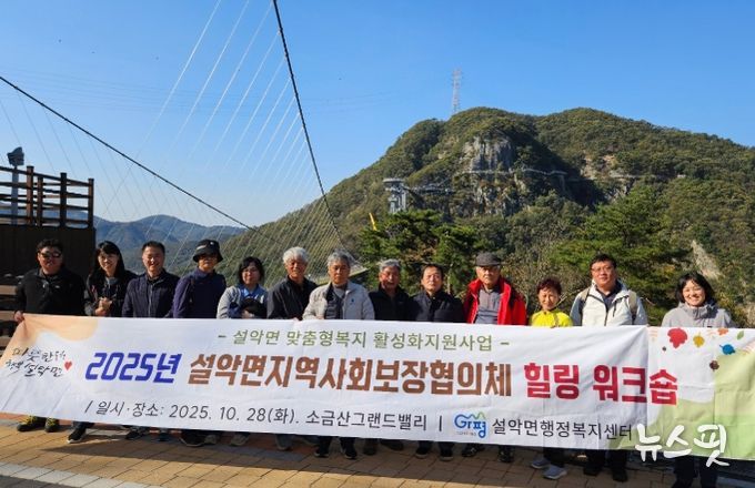 (뉴스핏 = 김호 기자) 가평군 설악면 지역사회보장협의체는 ‘2025년 설악면 맞춤형복지 활성화 지원사업’의 일환으로 최근 강원도 원주시 소금산 그랜드밸리에서 힐링 워크숍을 진행했다.