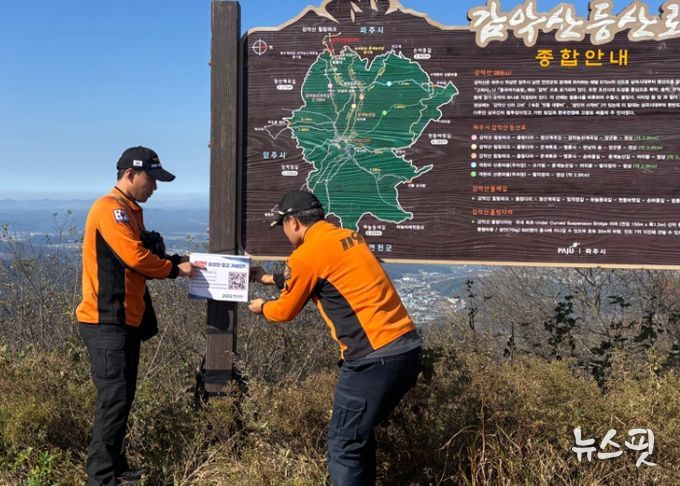 파주소방서는 ▲산악안전지킴이 운영 ▲산악위치표지판 및 간이구조구급함 정비 ▲산악사고 예방을 위한 교육·홍보활동 ▲산악사고 긴급구조역량 강화 ▲유관기관 협업을 통한 산악사고 예방 강화 등의 대책을 추진해왔으며, 더 안전한 산행을 위한 ▲QR코드 안내판 설치를 통한 현 위치 확인 및 신고 방법 안내 ▲주요 등산로 3곳에 축광 리본 70개 설치 ▲이정표가 부족한 구간에 파주시청과 협력해 이정표 추가 설치 ▲훼손된 산악 위험 표지판 정비 ▲의용소방대와의 공조 구조 활동 강화 등 실효성 있는 대책도 함께 추진한다.