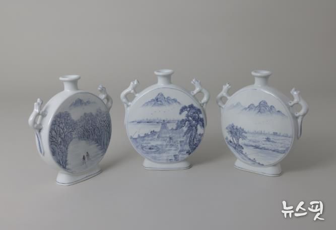 (뉴스핏 = 김호 기자) 여주시 도예명장 석담(昔潭) 최병덕의 제5회 개인전 ‘여주 팔경을 펼치다’가 여주도자문화센터 2층 전시관에서 성황리에 진행되고 있다. 이번 전시는 10월 17일부터 12월 31일까지로 여주팔경과 여주시 읍면동의 이야기를 전통 청화백자에 담은 작품들을 선보인다.