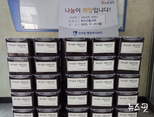 공순정 연무동장은 “추운 겨울을 앞두고 따뜻한 정성을 담아 김장김치를 기부해주신 광교산울교회에 깊이 감사드린다”며 “기부해주신 김치는 꼭 필요한 이웃들에게 소중히 전달하겠다”고 전했다.