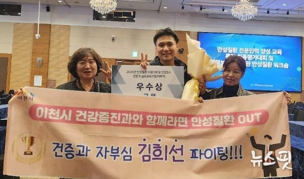 (뉴스핏 = 김수진 기자) 이천시보건소는 소속 직원인 김희선 주무관이 지난 18일 전라남도 여수에서 열린 ‘2025년 만성질환 사업기획 및 건강조사 전문가 실무교육과정(FMTP) 전국 최종 평가대회’ 구연 부문에서 우수상을 받았다고 밝혔다.