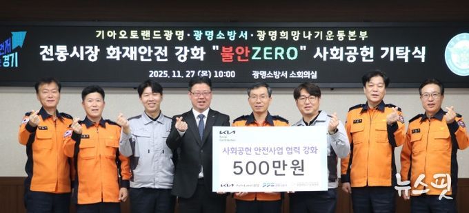 (뉴스핏 = 김수진 기자) 광명소방서는 11월 27일, ‘광명희망나기운동본부’, ‘기아오토랜드 광명’과 함께 지역 내 화재예방과 주거안전 강화를 위한 기탁식을 진행했다고 밝혔다.