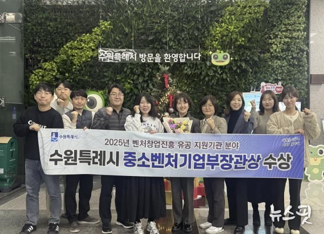 (뉴스핏 = 김호 기자) 수원특례시가 중소벤처기업부가 주관한 벤처창업진흥 유공 포상에서 ‘우수정책입안단체’로 선정돼 중기부 장관상을 받았다. 시상식은 27일 경기창조경제혁신센터에서 열린 ‘2025 경기 딥테크 스타트업 FLEX’ 행사 중 열렸다.