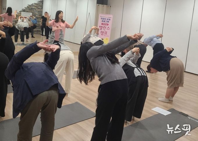 ‘직장인 밸런스캠프’는 일과 건강의 균형을 돕기 위해 마련된 프로그램으로, 운동할 시간을 내기 어려운 직장인을 위해 사업장을 직접 방문해 통합 건강관리 프로그램을 운영한다.