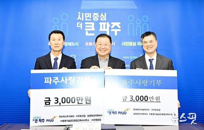 김경일 파주시장은 “매년 꾸준한 나눔으로 지역과 함께해 주시는 기업 여러분께 깊이 감사드린다”라며 “이번 성금이 연말 지역 곳곳에 따뜻한 온기를 전해 많은 이웃들에게 힘이 되길 바란다”라고 밝혔다.