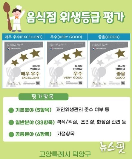 (뉴스핏 = 김호 기자) 고양특례시 덕양구는 12월 1일부터 5일까지 위생등급제 지정 업소를 대상으로 ‘2025년 하반기 위생등급 지정 음식점 사후관리’를 진행한다.