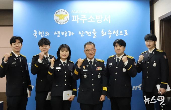 (뉴스핏 = 김수진 기자) 파주소방서는 1일 본서 서장실에서 근속승진 대상자 11명에 대한 계급장 수여식을 실시했다.