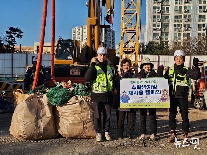 (뉴스핏 = 김수진 기자) 농협중앙회 경기본부(본부장 엄범식)와 (사)농가주부모임전국연합회(회장 박민숙)는 3일 국토안전관리원 수도권지역본부와 경기도 고양시에서 추락방지망 새활용 캠페인에 나섰다.