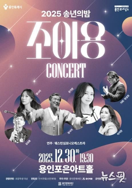 (뉴스핏 = 김수진 기자) 용인문화재단은 오는 12월 30일 용인포은아트홀에서 지역예술인과 함께하는 ‘2025년 송년의 밤 - 조아용 콘서트‘를 용인예총(한국예총 용인지회)과 공동 개최한다.