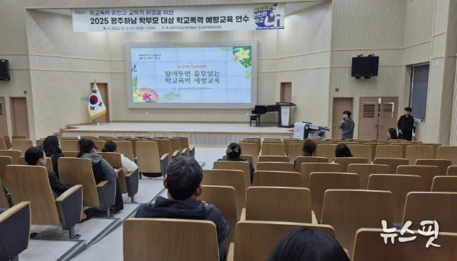 (뉴스핏 = 김수진 기자) 광주하남교육지원청은 12월 3일 광주하남지역 학부모를 대상으로 학교폭력 예방 역량 강화를 위한 연수를 실시했다. 이번 연수는 가정에서 실천할 수 있는 학교폭력 예방 전략을 전달하고, 실제 사안 발생 시 처리 절차와 교육적 해결 방안을 명확히 이해하도록 돕기 위해 마련됐다.