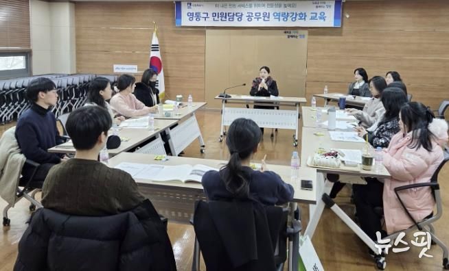 (뉴스핏 = 김호 기자) 수원시 영통구는 지난 4일, 영통구청 상황실에서 종합민원과와 12개 동 행정복지센터 민원 담당 공무원을 대상으로 민원업무 직무역량 강화 업무연찬을 실시했다.