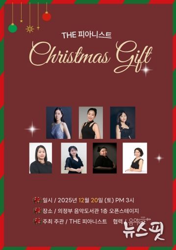 (뉴스핏 = 김수진 기자) 의정부음악도서관은 오는 20일 오후 3시, 1층 오픈스테이지에서 ‘The 피아니스트 크리스마스 선물’ 공연을 개최한다고 8일 밝혔다.