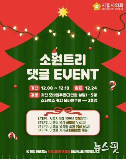 (뉴스핏 = 김수진 기자) 경기 시흥시의회가 다가오는 성탄절을 맞아 시민들과 따뜻한 마음을 나누고 소통을 강화하기 위해 ‘소원트리 댓글 이벤트’를 진행한다.